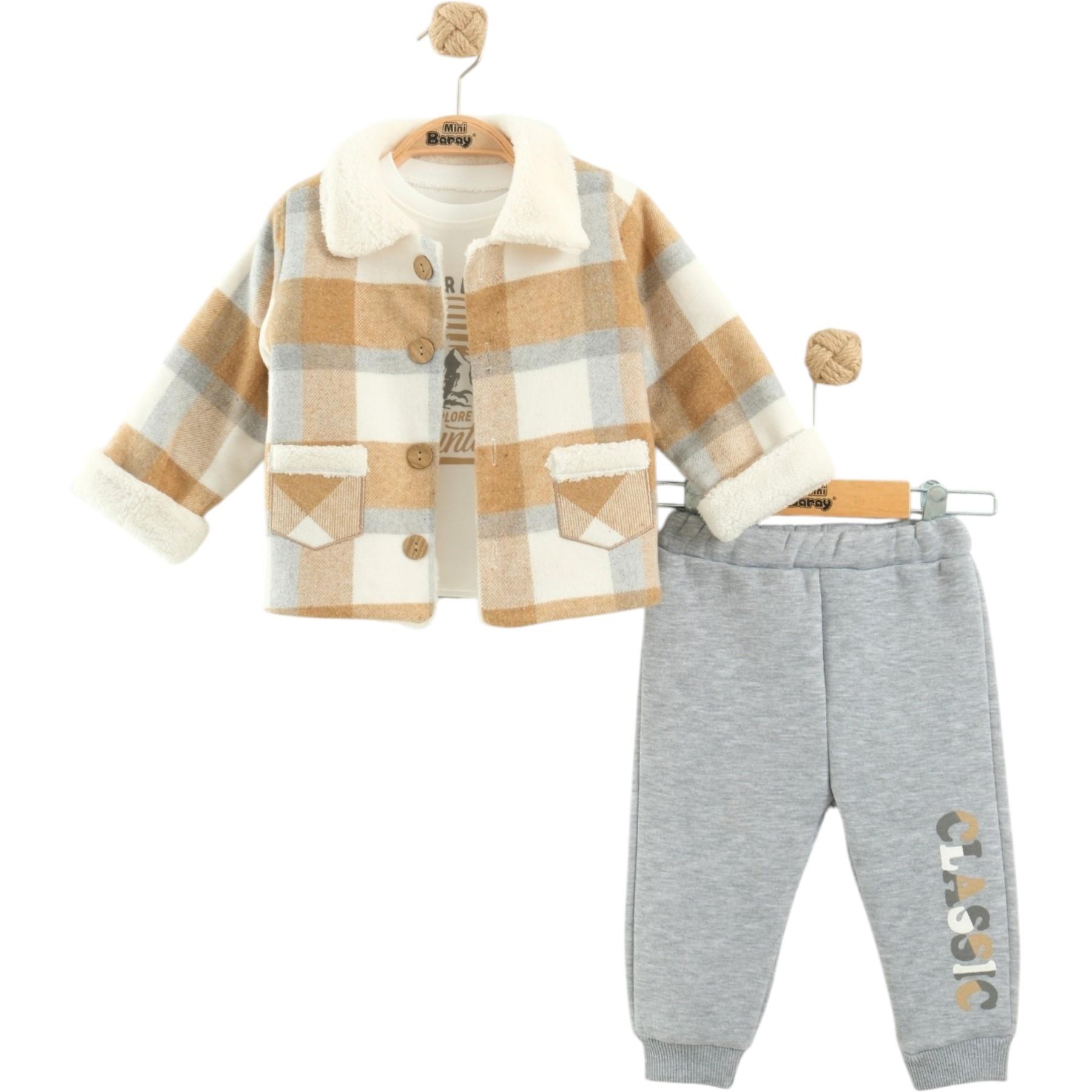 Erkek Bebek Ekose Ceketli 3'lü Takım BRY-899 (BRY-899)