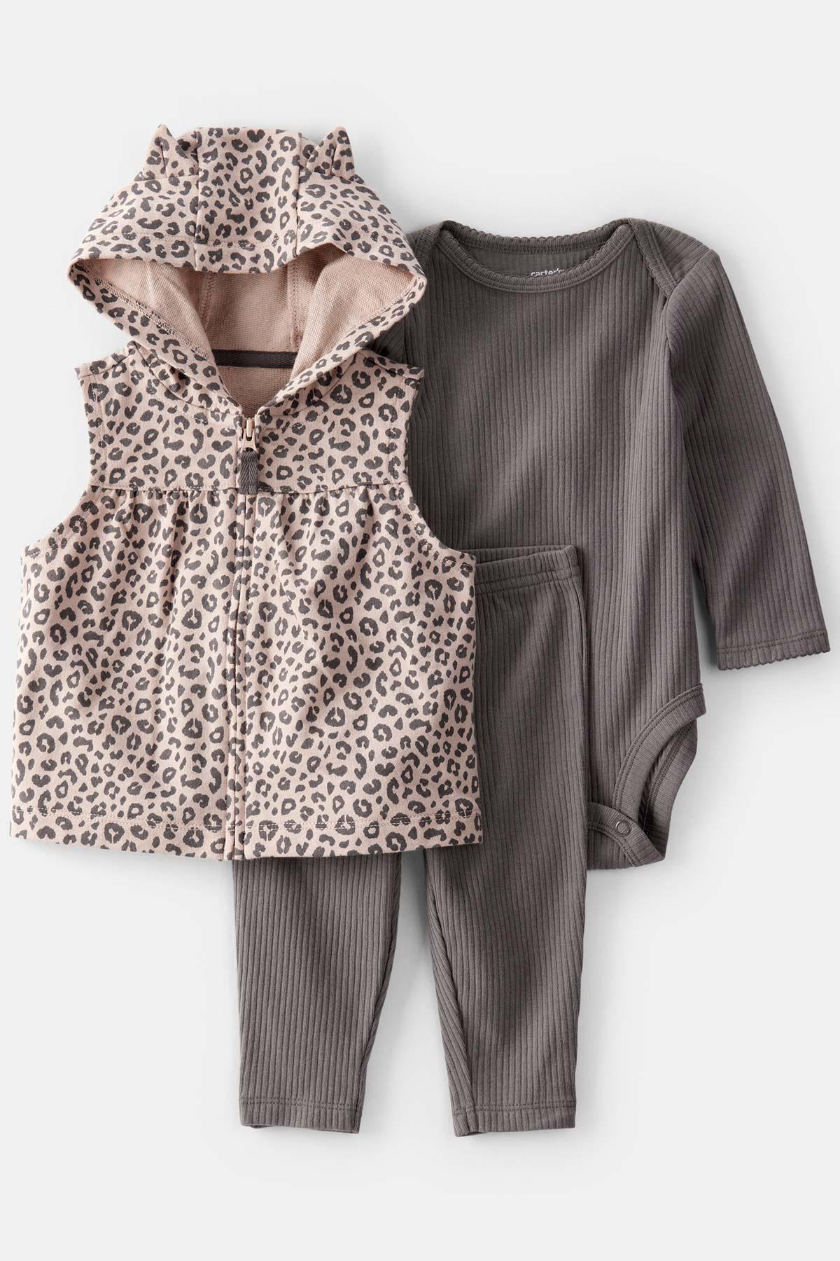 • Birbirinden farklı kombinler yapmak için bu üç yumuşak parçayı sepetinize atın! 3 parçadan oluşan set içerisinde önden fermuarlı bir yelek, uzun kollu bir body ve bir pantolon bulunur