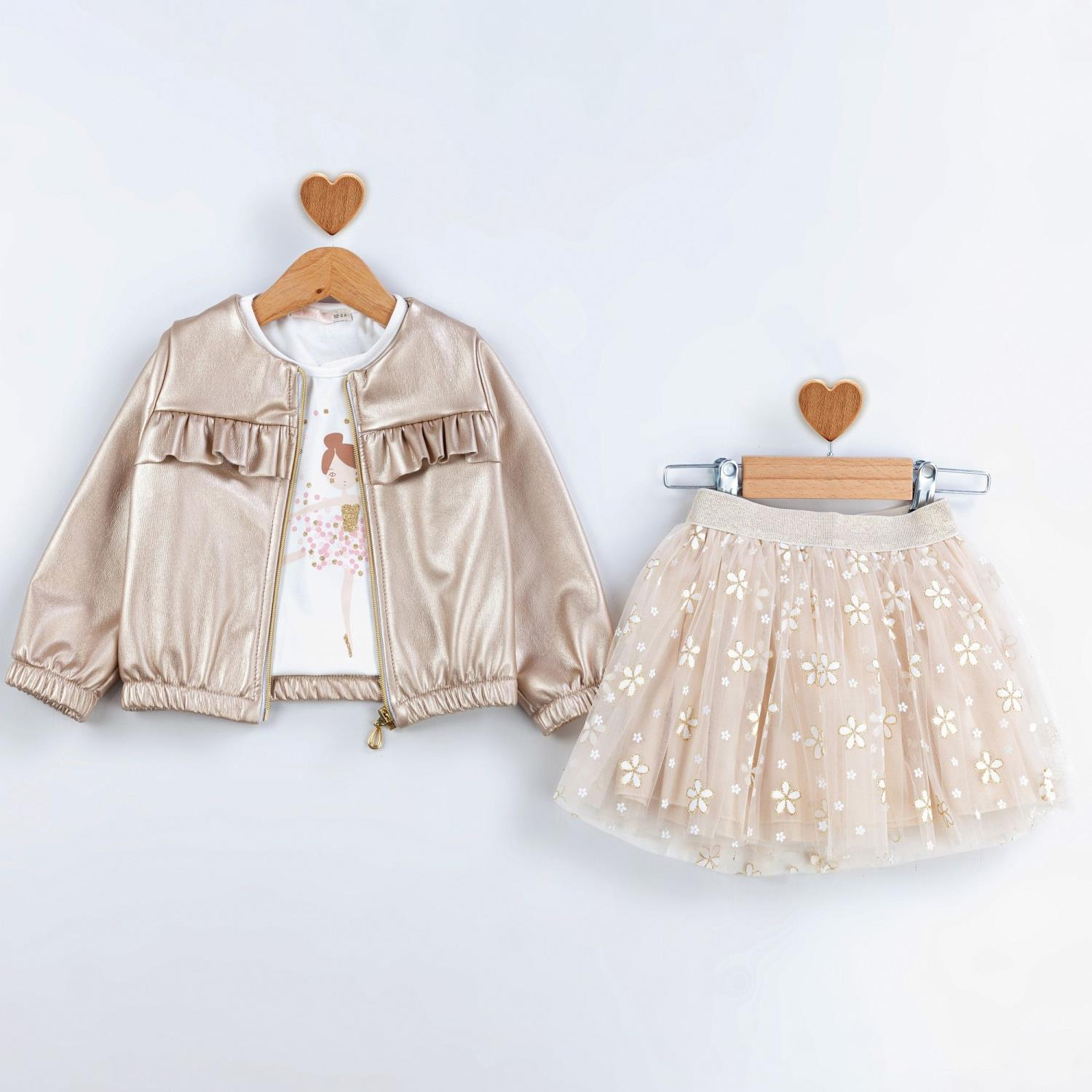 Kız Çocuk Deri Ceketli Tütü Etekli 3 lü Takım (BBR-4955)