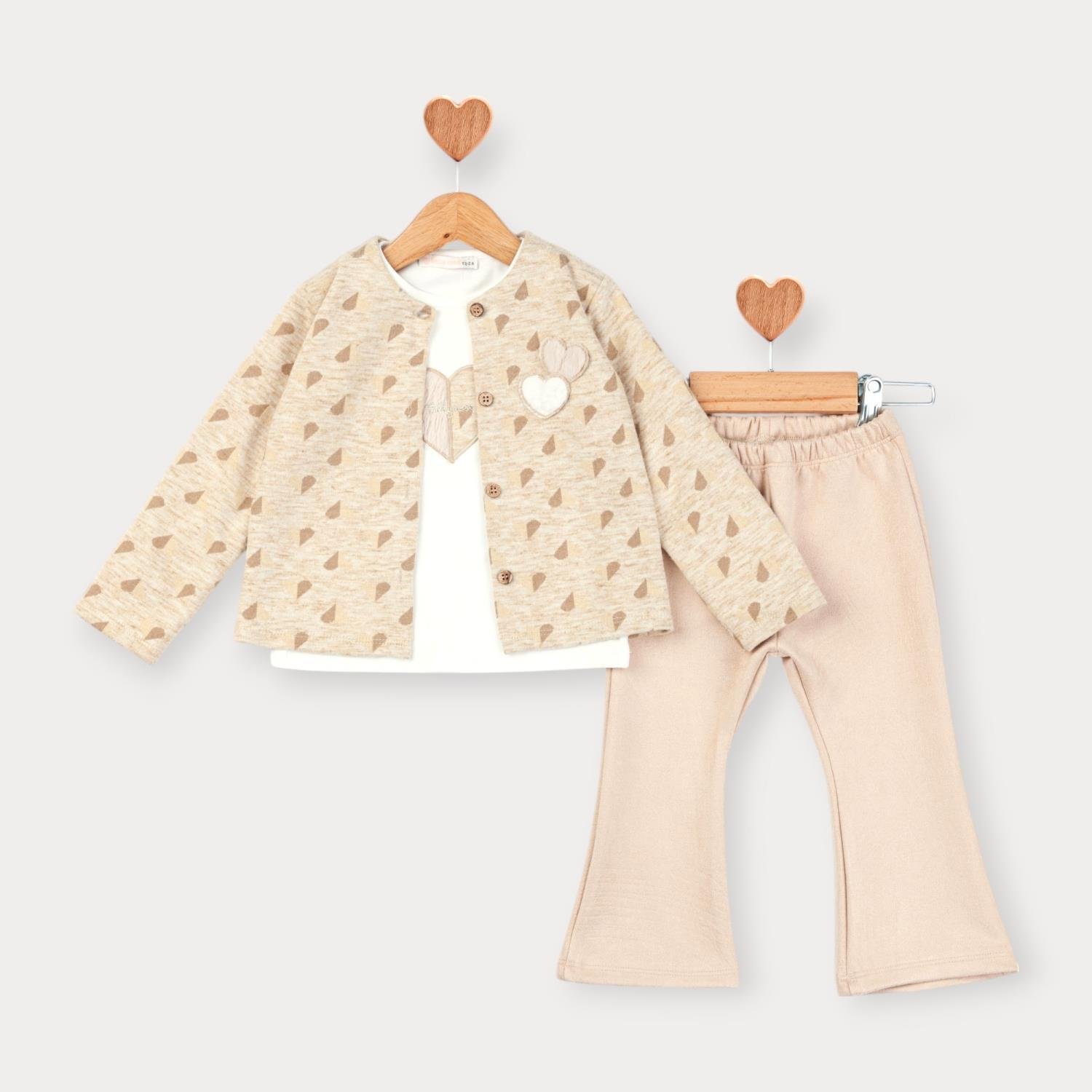 Kız Çocuk Hırkalı İspanyol Paça Nubuk Pantolonlu 3 lü Takım (BBR-4975)