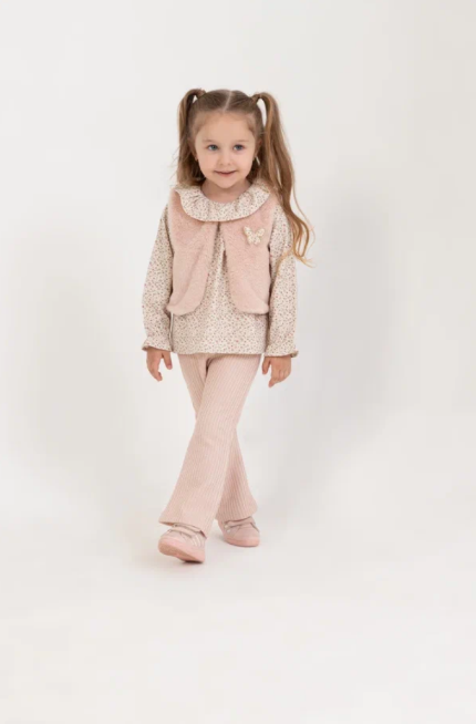 Kız Çocuk Peluş Yelekli İspanyol Paça Pantolonlu 3 lü Takım (BBR-7839)