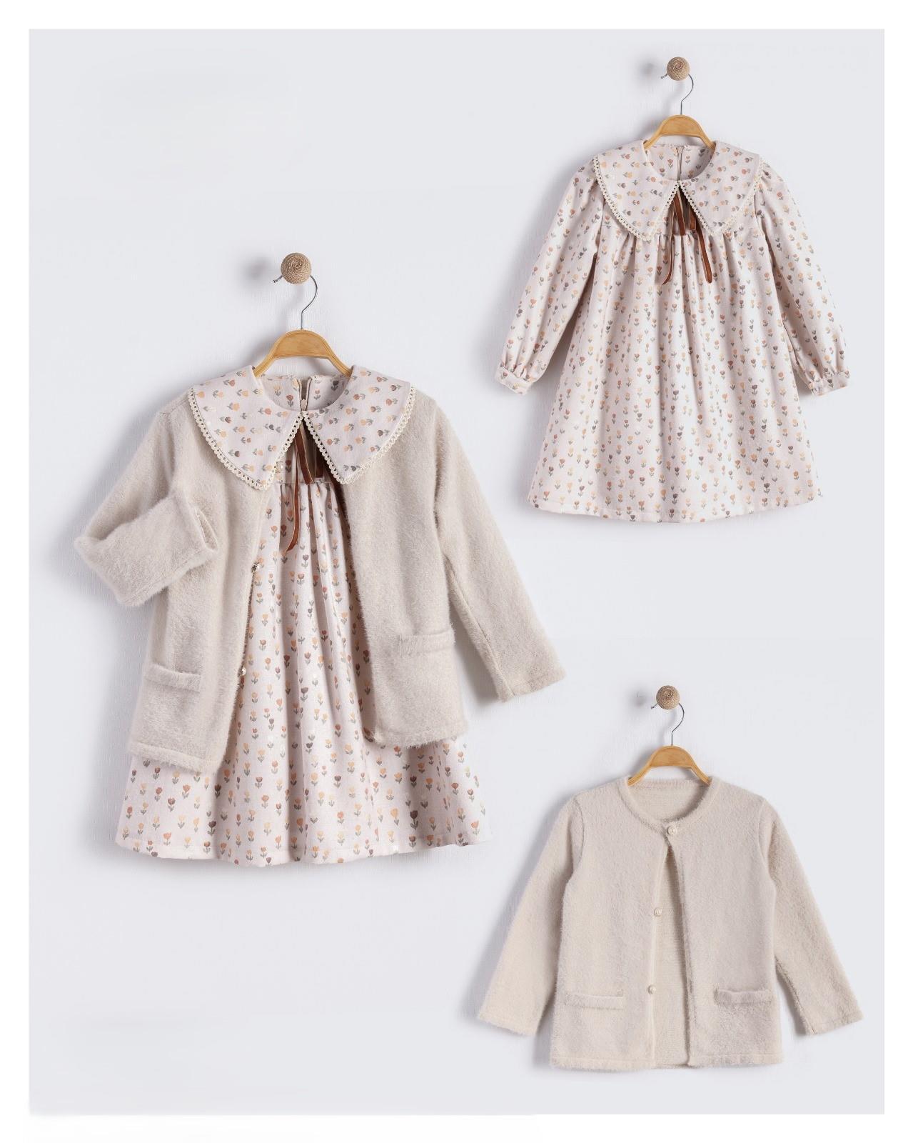 Kız Çocuk Yumuş Hırkalı Poplin Çiçekli Elbise Takım BEB-16557 (BEB-16557)